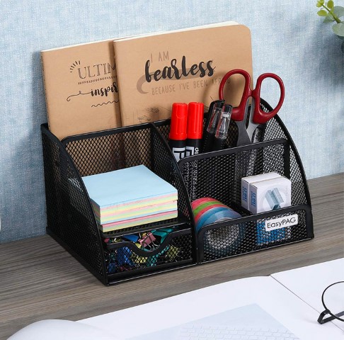Mesh organizer offers different compartment sizes that are suitable for storing small stationery items