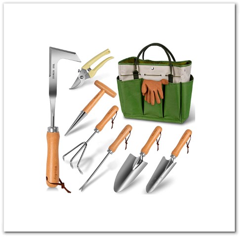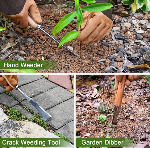 — All gardening tools are made of high hardness stainless steel, which is tough, sharp, and durable enough to meet various needs of gardening work.
