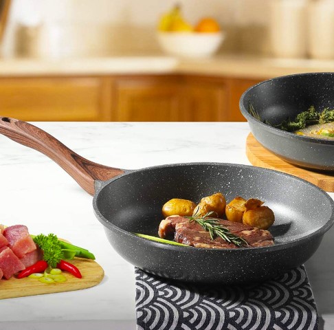 This granite stone coating is imported from Switzerland, which is extremely non-stick, so you can make a meal full of flavor with less oil. The most important is that it is super easy to clean. You don’t need a dishwasher, just wipe it with a paper towel or rinse it with water, which make cooking not only easier but also more enjoyable.
