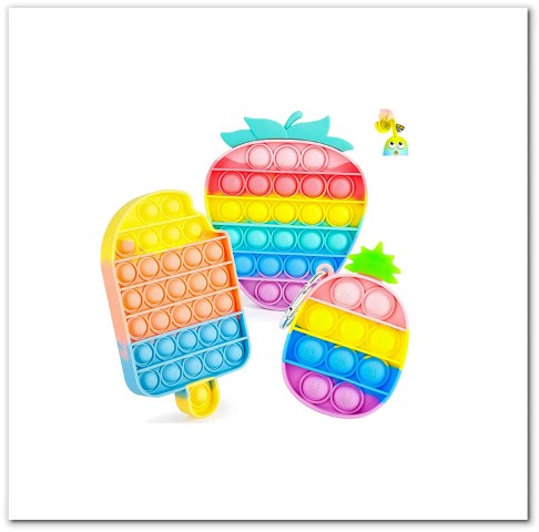 • [Premium & Durable]:This pop ut fidget toy made of high quality silicone,has tie dye colors and cute food ice cream/pineapple/strawberry shape. Waterproof properties can make it reusable.