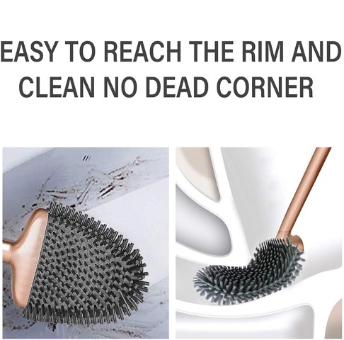 - Easily Clean Dead Corner: The flat brush head can be bent to fit the angle of the rim perfectly, reaching under the rim. The tip of the brush head is designed to clean the edge of the toilet bowl better by bending the brush head upward.